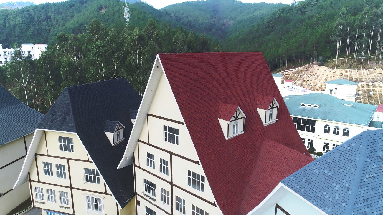 Проект использует асфальтовую плитку из стекловолокна, темные плитки, расположенные поперечно, подчеркивая стиль дизайна виллы. Под солнцем плитка сияет уникальным блеском, словно рассказывая истор...